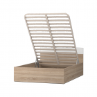 Osztatlan ágyneműtartó rész van benne, a fenéklemez egy behelyezhető keretre fektethető rá.